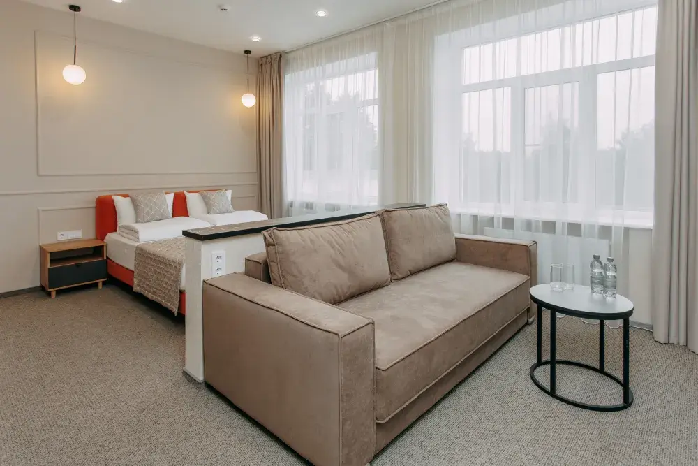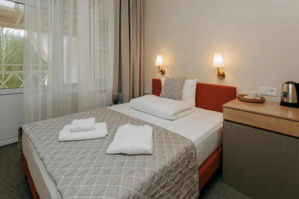 В отеле — 43 номера категорий «Стандарт», «Комфорт», «Комфорт семейный»; продуманы мобильные варианты спальных мест. До 120 гостей проживают с комфортом, часть номеров имеет террасы с мебелью и видом на лес или воду. 6 зеркальных домов с панорамными окнами для особых заездов и VIP-размещения.