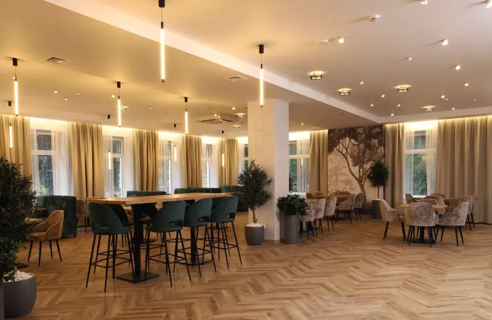 Мы подготовили для вас удобные пространства — от деловых сессий до больших праздничных вечеров: